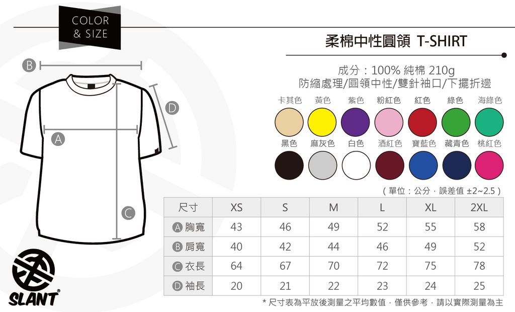 ※T-SHIRT材質為100% 25支全精梳棉(210g)獨特合身版型,耐洗不易起毛球、布料舒適透氣、車縫精緻、領口不易鬆弛。